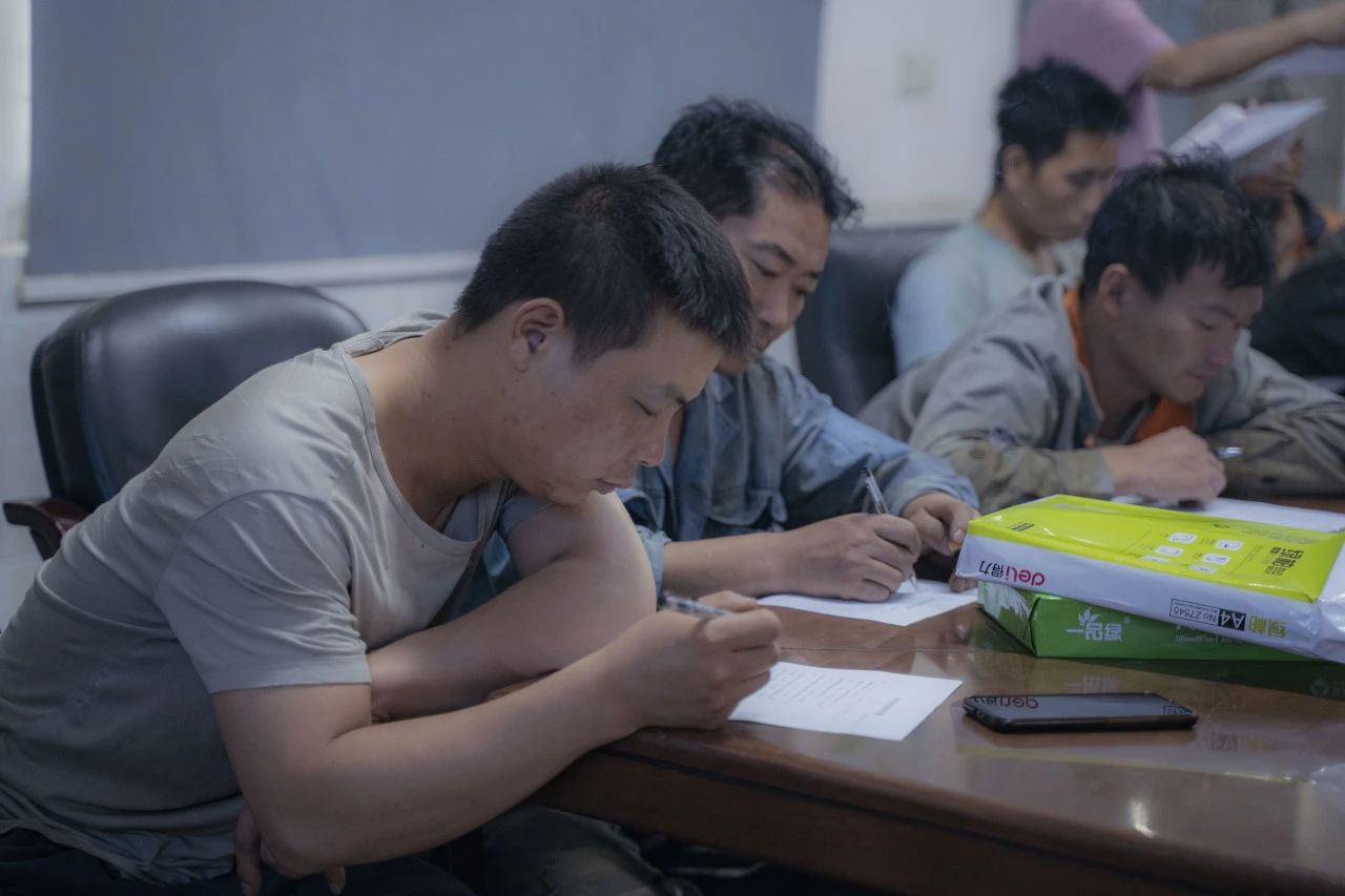 在對行車、有限作業(yè)空間安全操作標準進行細致學(xué)習(xí)后,全體參會人員一同觀看安全教育視頻,了解車間作業(yè)中發(fā)生的真實事故,以及事故帶來的人員財產(chǎn)傷害。安全生產(chǎn)教育培訓(xùn)的環(huán)節(jié),車間工人進行行車安全知識培訓(xùn)考試。安環(huán)委主任表示,他希望通過現(xiàn)場筆試這一方式,檢驗大家此次培訓(xùn)掌握情況,同時進一步加深鞏固安全知識。