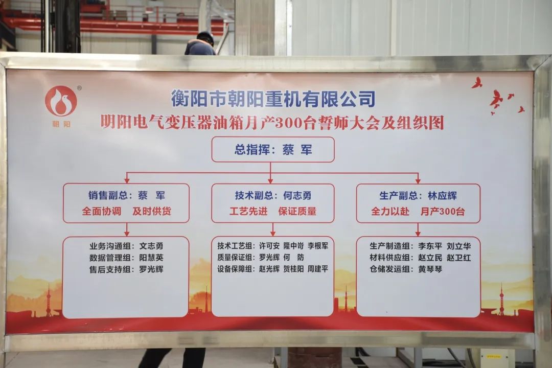 今天的宣誓在我們每個(gè)人的心中種下一個(gè)火種,將我們?nèi)w朝陽(yáng)人團(tuán)結(jié)一心、齊心協(xié)力、精益求精,不斷創(chuàng)新,不斷突破,服務(wù)好客戶,提升好自身。以做好明陽(yáng)電器月供300臺(tái)變壓器油箱為起點(diǎn),攻艱克難,持續(xù)追求卓越,不斷超越自我,做出一個(gè)客戶滿意、員工幸福、茁壯成長(zhǎng)般“驕陽(yáng)似火”的朝陽(yáng)集團(tuán)。
