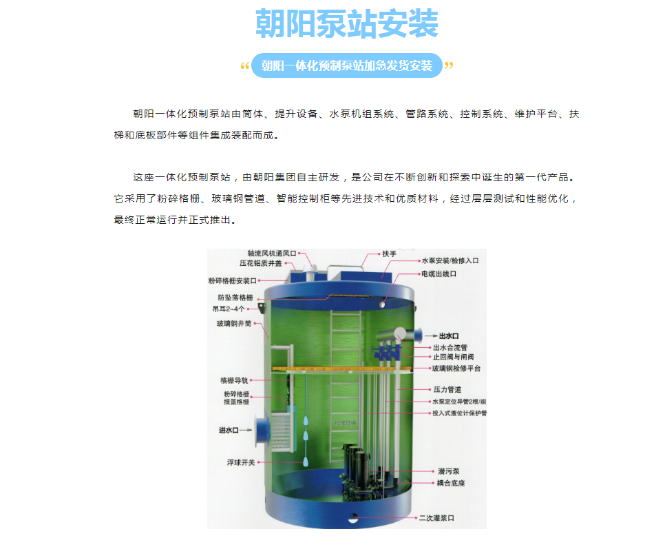 朝陽集團(tuán)應(yīng)工業(yè)園客戶的具體需求,按時按需完成并發(fā)貨。定制的一體化預(yù)制泵站,在設(shè)計上充分考慮了客戶的實際使用情況,經(jīng)過嚴(yán)格測試和檢驗,確保其性能穩(wěn)定可靠,壽命長久。
